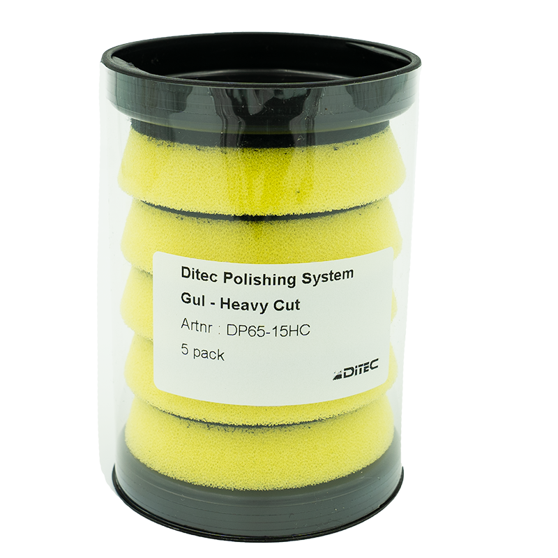 NEW! Ditec foam polishing pads 2.0 Our new, premium quality foam pads, tested and manufactured for use with our range of high performance polishing products. The yellow coloured pad is made for high cut / high gloss effect. Suitable for moderate to high cut correction of all modern paint types and gelcoats. Mostly used for correction of mediumhard paint. Can often also be used as a one-step choice in the correct combination of polish and matched to paint hardness. For use with (DA) oscillating machines. The construction and the quality of foam selected for manufacturing provides the user with a pad that has longlife, good heat dissipation and workability of polishing product. Recommended for use in combination with Ditec Heavy Cut polish. Can also be used in other combinations, such as with our Medium Cut. Easily cleaned with pressured air or a brush during polishing process, can be rinsed afterwards or cleaned in a pad washer. Keep the pad clean during process for optimal finish.